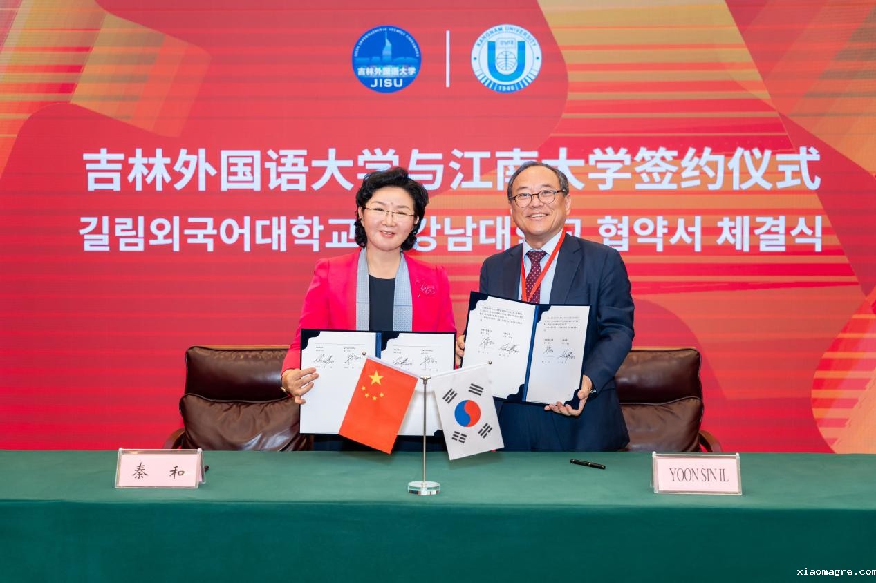 秦和校长与韩国釜山外国语大学校长张舜兴为“全球合作中心&韩国语言文化研究中心”揭牌,两校将在访学研修、科研合作等领域深化合作。