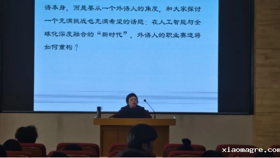 讲座中,王教授分析了外语人的价值远非AI所能替代。在AI时代,外语人才正面临着职业赛道的重构。翻译领域,高级翻译、专业翻译及本地化服务需求激增,外语人才具备更专业的知识和跨文化理解能力。教育领域,AI技术为外语教学带来革新,外语人才可借助技术开发创意课程,参与AI语言模型研发,为教学注入更多人性化元素。